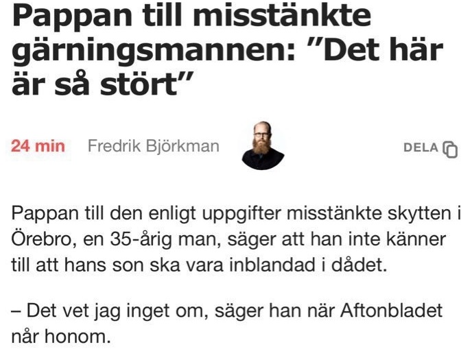 Under pågående polisinsats i Örebro på tisdagen dök en artikel upp på Aftonbladet där tidningens reporter hade ringt upp den misstänkta gärningsmannens far som då var ovetande om händelserna vid skolan. Sedermera tog Aftonbladet ned artikeln och bad om ursäkt.