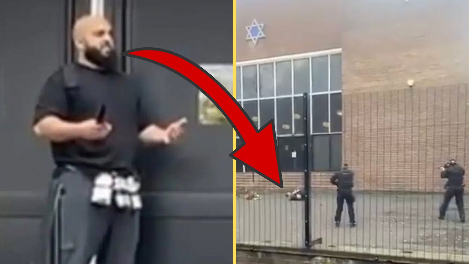 Runt kl. 09:30 lokal tid fick polisen in larm om att en bil körts mot personer nära synagogan i Crumpsall, Manchester, samtidigt som någon hade blivit knivhuggen. Beväpnade poliser skickades till platsen och sköt den misstänkte omkring sju minuter efter det första larmet. Den misstänkte föll död till marken efter skottet.