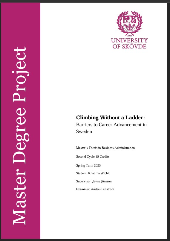 Examensarbetet fick titeln ”Climbing Without a Ladder: Barriers to Career Advancement in Sweden”.