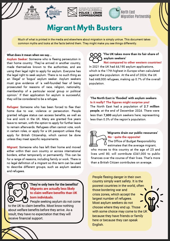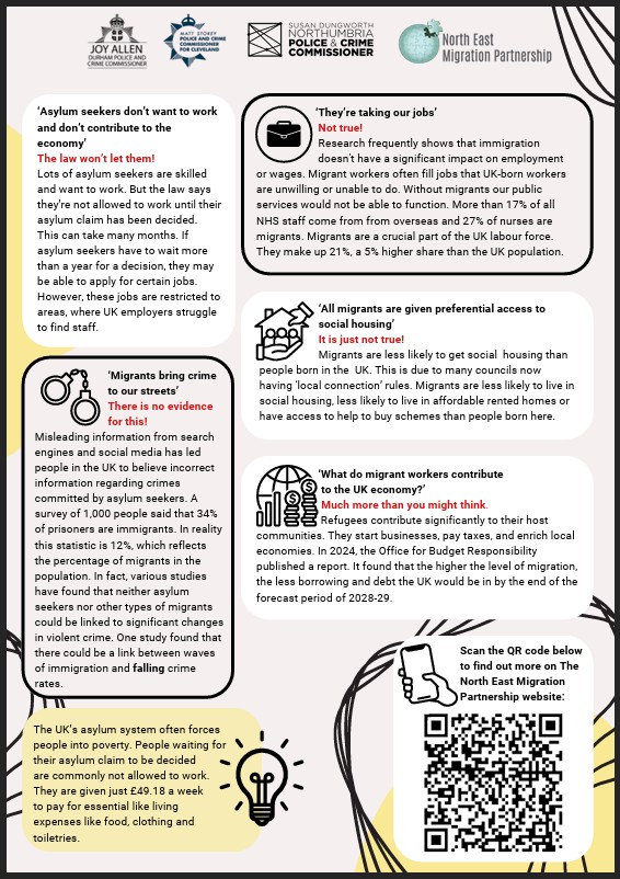 En broschyr som syftar till att ta itu med påstådd felaktig information om invandring och asylsökande, som tagits fram av polis- och kriminalkommissarier i Northumbria, Cleveland och Durham, kommer att distribueras till bibliotek och kulturhus runt om i regionerna.