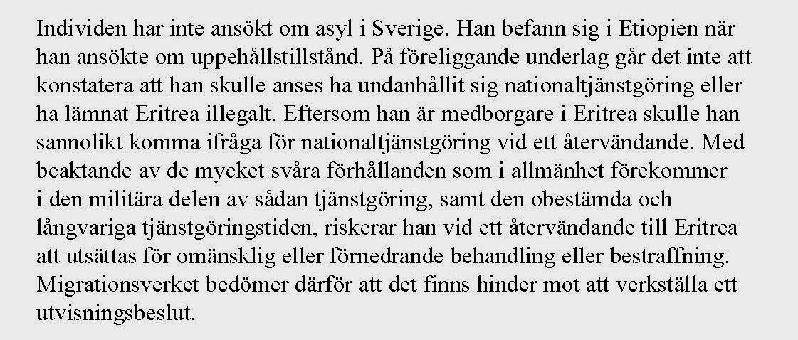 Beträffande vem som ska fatta beslut om verkställighetshinder så flyttas det i utredningens slutbetänkande från domstolarna och till Migrationsverket. Det är en myndighet där man med ett pennstreck gav alla migranter som sade sig komma från Syrien automatiska uppehållstillstånd, en myndighet som nyligen i en uppmärksammad våldtäktsrättegång avstyrkte åklagarens yrkande på utvisning av den eritreanske gärningsmannen med hänvisning att det skulle kunna bryta mot internationella konventionsåtaganden om denne tvingades göra militärtjänst i hemlandet i samband med återvandringen.