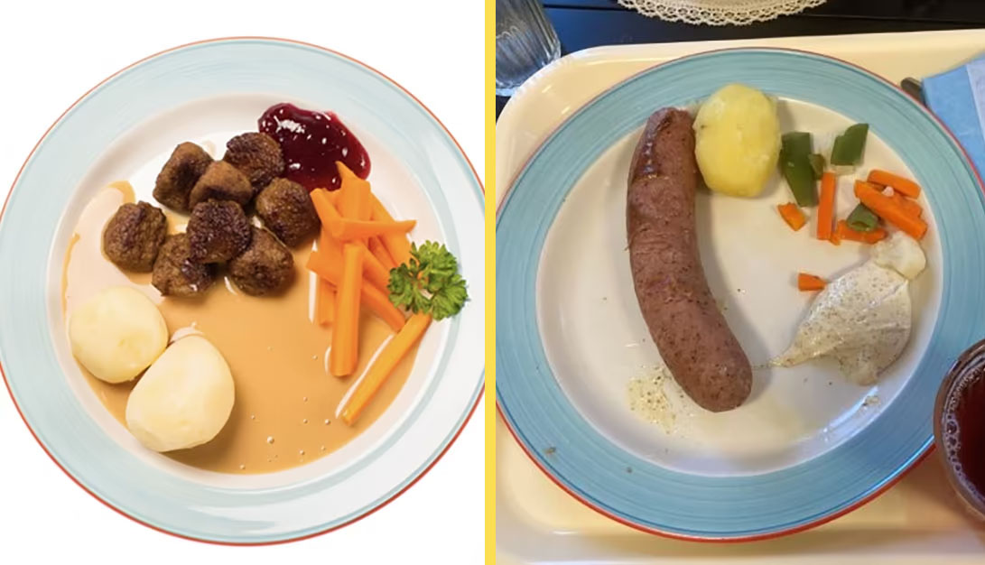 Tallrik i reklamen och motsvarande tallrik på bordet i verkligheten. Foto: Vardaga / Privat