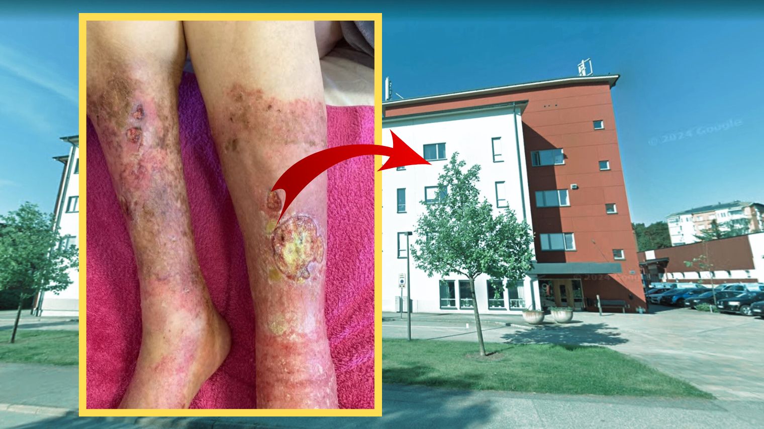 Först när dottern krävde att få närvara vid en omläggning av såren uppdagades omfattningen. Bandagen togs bort – och under dem fanns infekterade sår, fyllda av var som rann längs benen.