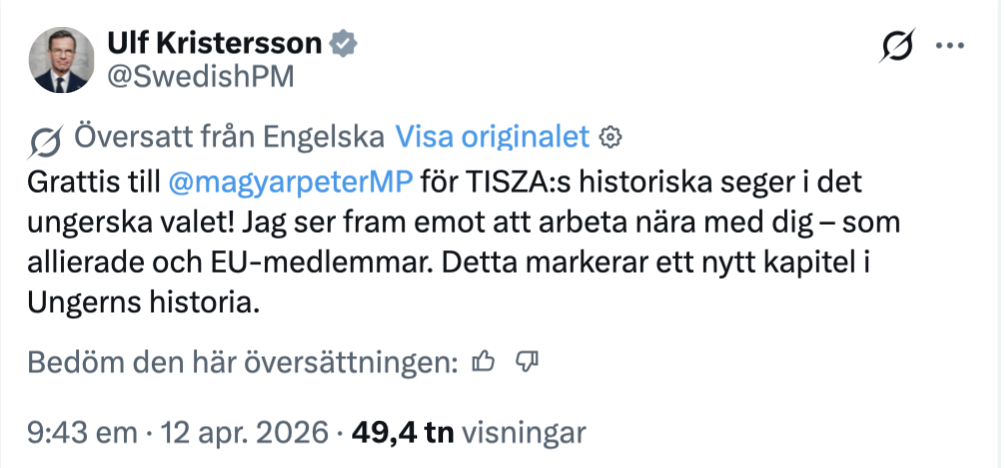 Enligt Sveriges statsminister Ulf Kristersson (M), är valsegern ett nytt kapitel i Ungerns historia och uttryckte förväntan om ett nära samarbete inom ramen för EU och alliansen.