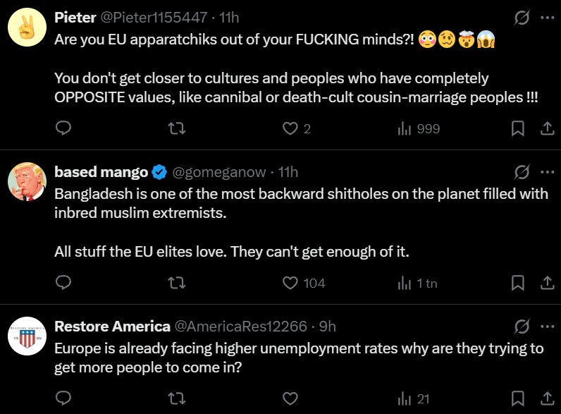 I början av året meddelade EU att man ingått ett så kallat handelsavtal med Indien, något som även öppnar för massiv invandring. Nu är unionen på väg att sluta ett liknande avtal med Bangladesh och även det väcker reaktioner.