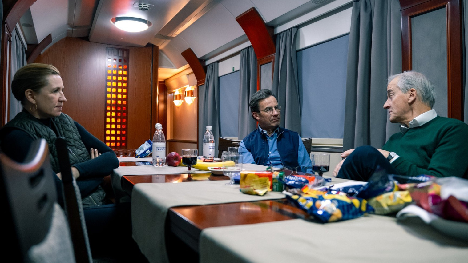 Sveriges, Norges och Danmarks statsministrar; Ulf Kristersson, Jonas Gahr Störe och Mette Frederiksen; har rest till den ukrainska huvudstaden tillsammans – med tåg.
