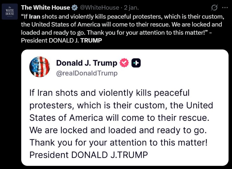 I förra veckan varnade Trump att om Iran ”våldsamt dödar fredliga demonstranter” skulle USA ingripa.