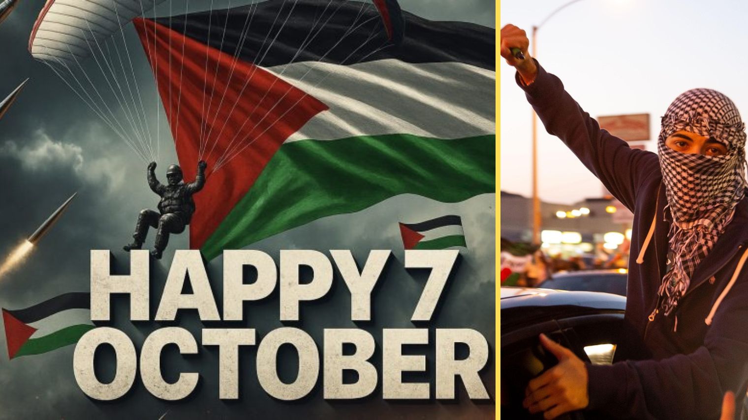 På sina konton lade han upp en AI-producerad bild med orden ”Happy 7 October” och en svärm av terrorister som angriper Israel från luften.