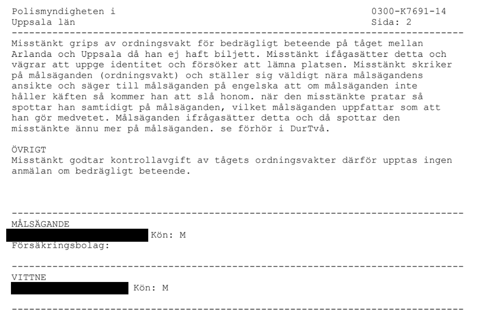 Enligt tingsrättens mening framgår emellertid inte att Simon Superti varit likgiltig i förhållande till effekten på det sätt som krävs för att han ska kunna anses ha handlat uppsåtligen. Simon Superti frikänns därför även från åtalet för förgripelse mot tjänsteman.