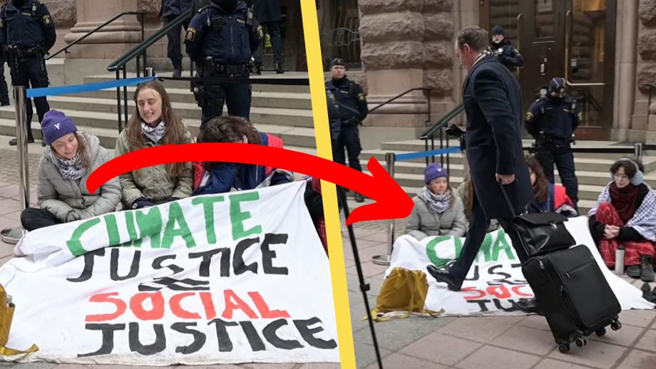 Andersson nonchalerade klimataktivisternas protest – klev rakt över banderollen och gick vidare in i riksdagen.