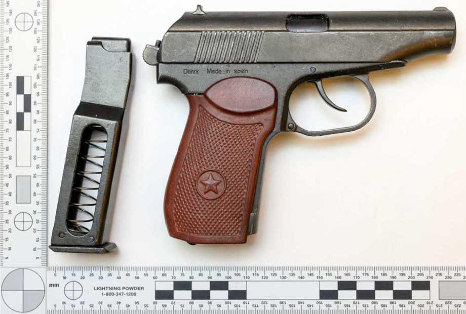 Vid visiteringen påträffades enligt förundersökningen utöver svärdet även två stycken knivar och en pistol. I åtalet uppges avvikande tre knivar samtidigt som pistolen inte omnämns.