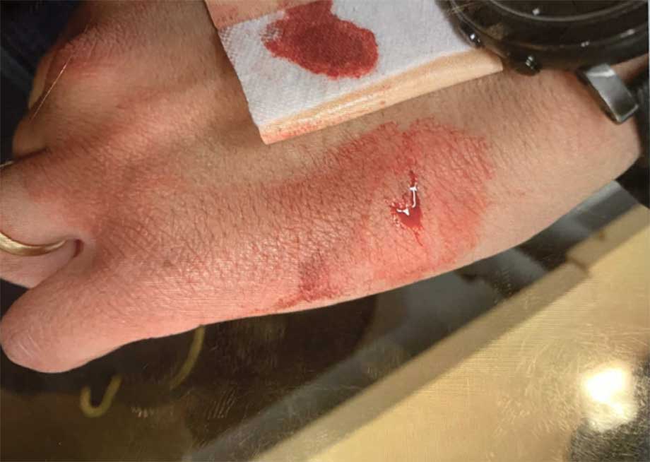 En av poliserna mottog ett hugg rakt i bröstet som trängde så långt in att det punkterade lungan. Om han inte snabbt kommit under vård skulle han avlidit av skadorna. Den andra polisen fick motta ett hugg över armen och skadades mindre allvarligt.