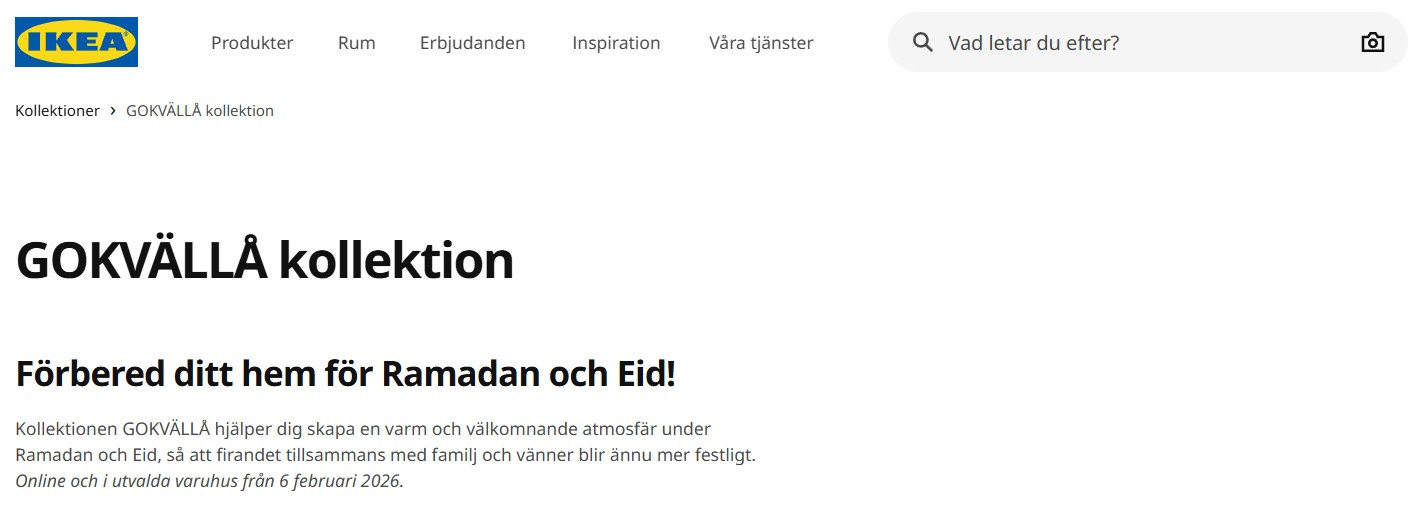 ”Kollektionen GOKVÄLLÅ hjälper dig skapa en varm och välkomnande atmosfär under Ramadan och Eid, så att firandet tillsammans med familj och vänner blir ännu mer festligt.” Så presenterar Ikea sin nya kollektion GOKVÄLLÅ inför ramadan som inleds i februari nästa år.