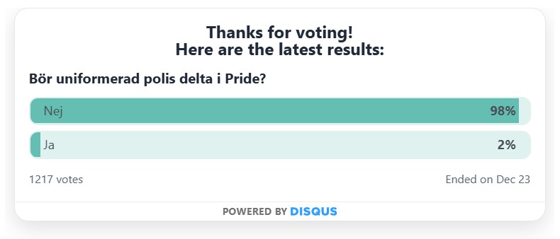 I december sa Gaypolisföreningens grundare Göran Stanton till QX att polisens deltagande i Pride ifrågasatts ända sedan 2002 och att han fått ”en känsla av att SD har fått mer inflytande nu” samt att ”våra frågor inte har samma tyngd längre”.