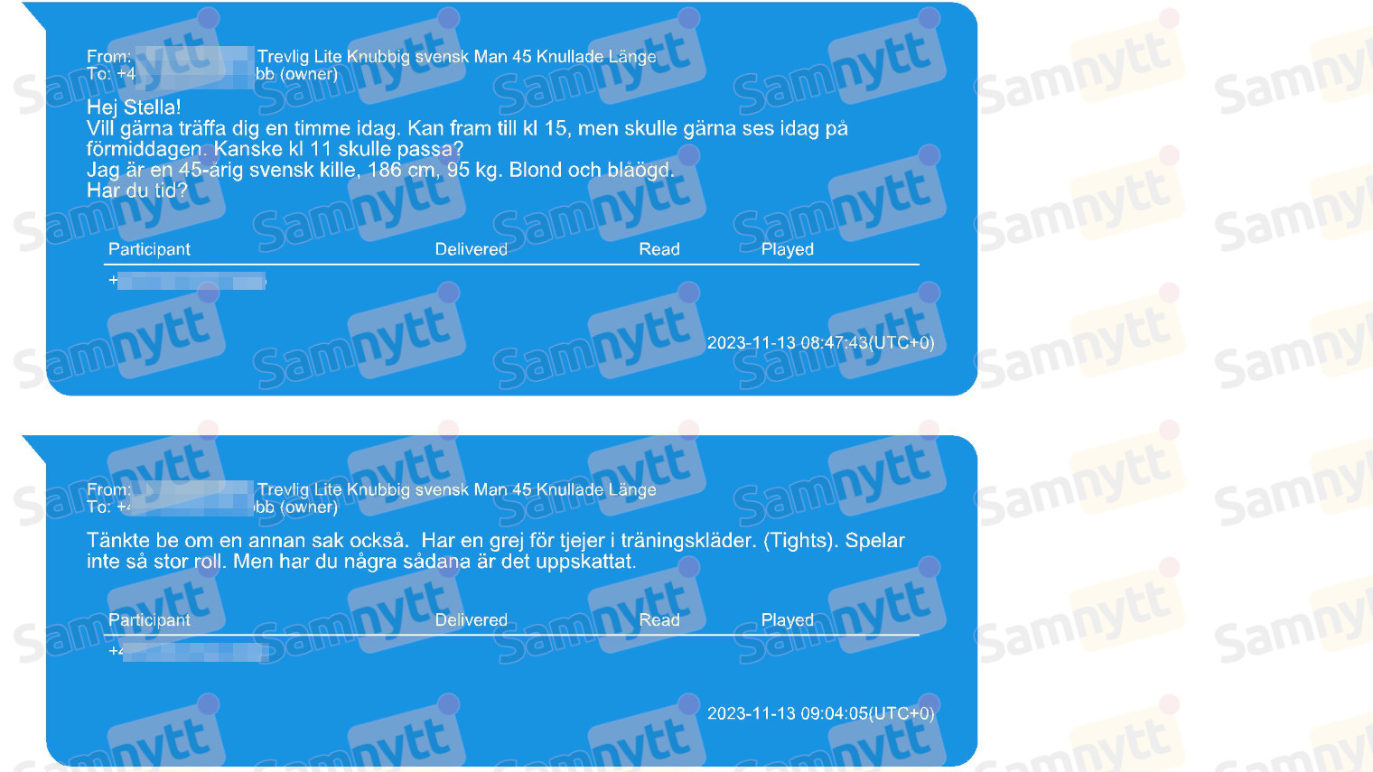 Jens B Nordström kontaktar den prostituerade kvinnan under morgonen den 13 november. I sin chattkonversation med henne, så uttrycker han ett särskilt önskemål om hur han vill att hon ska vara klädd.