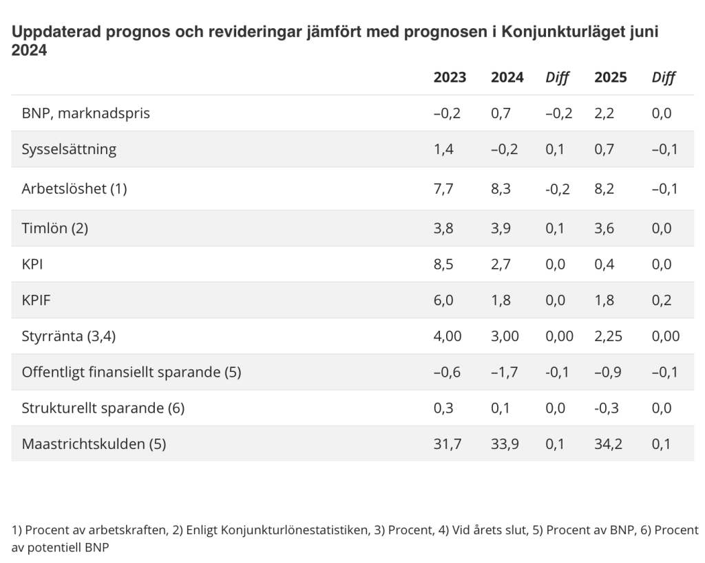 Vidare framgår det av rapporten att KI räknar med sex räntesänkningar innan sommaren 2025. Ytterligare tre gånger till i år och sedan tre sänkningar under under nästa år. KI spår att styrräntan landar på 2,25 procent före nästa sommar.