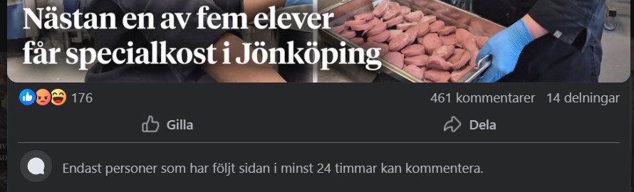 På Jönköpings-Postens Facebooksida blev det en livlig diskussion kring artiklarna om skolmaten så att tidningen gick in och begränsade vilka som kan kommentera: