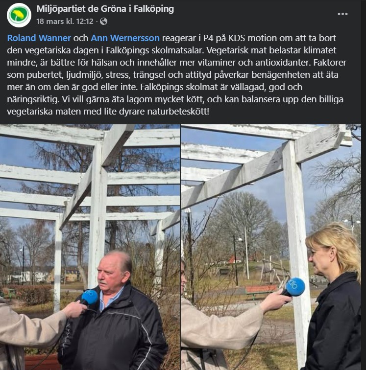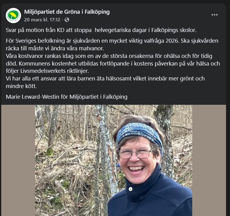 I Falköping har Kristdemokraterna rört upp känslorna genom en motion till fullmäktige som går ut på att slopa helvegetariska dagar i kommunens skolor. I Miljöpartiet har man ilsknat till rejält.