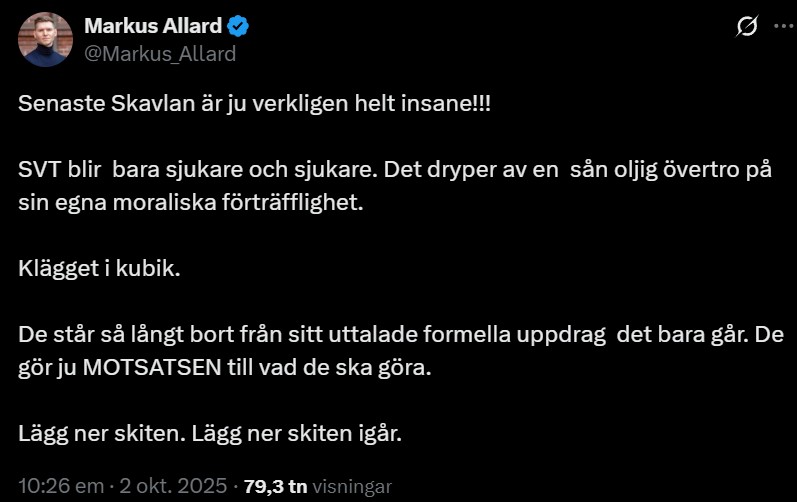 Nyligen gjorde Fredrik Skavlan comeback i statstelevisionen i sitt nya program Skavlan & Sverige där man i veckans avsnitt tog upp ämnen som USA, Ryssland och president Donald Trump. Medverkade gjorde bland andra den före detta moderate statsministern Carl Bildt som bjöd på sin sedvanliga skakiga analys av omvärlden full med felaktigheter. Kritiken efter programmet har varit omfattande.