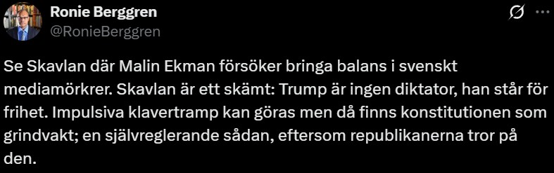 Även den konservative debattören och USA-kännaren Ronie Berggren är allt annat än imponerad: