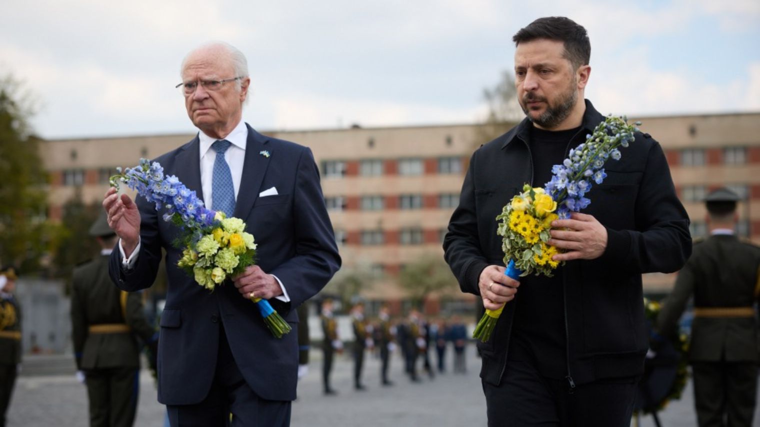 Under fredagen deltog Sveriges kung Carl XVI Gustaf, tillsammans med utrikesminister Maria Malmer Stenergard (M), i en minnesceremoni för stupade ukrainska soldater i Lviv i västra Ukraina.