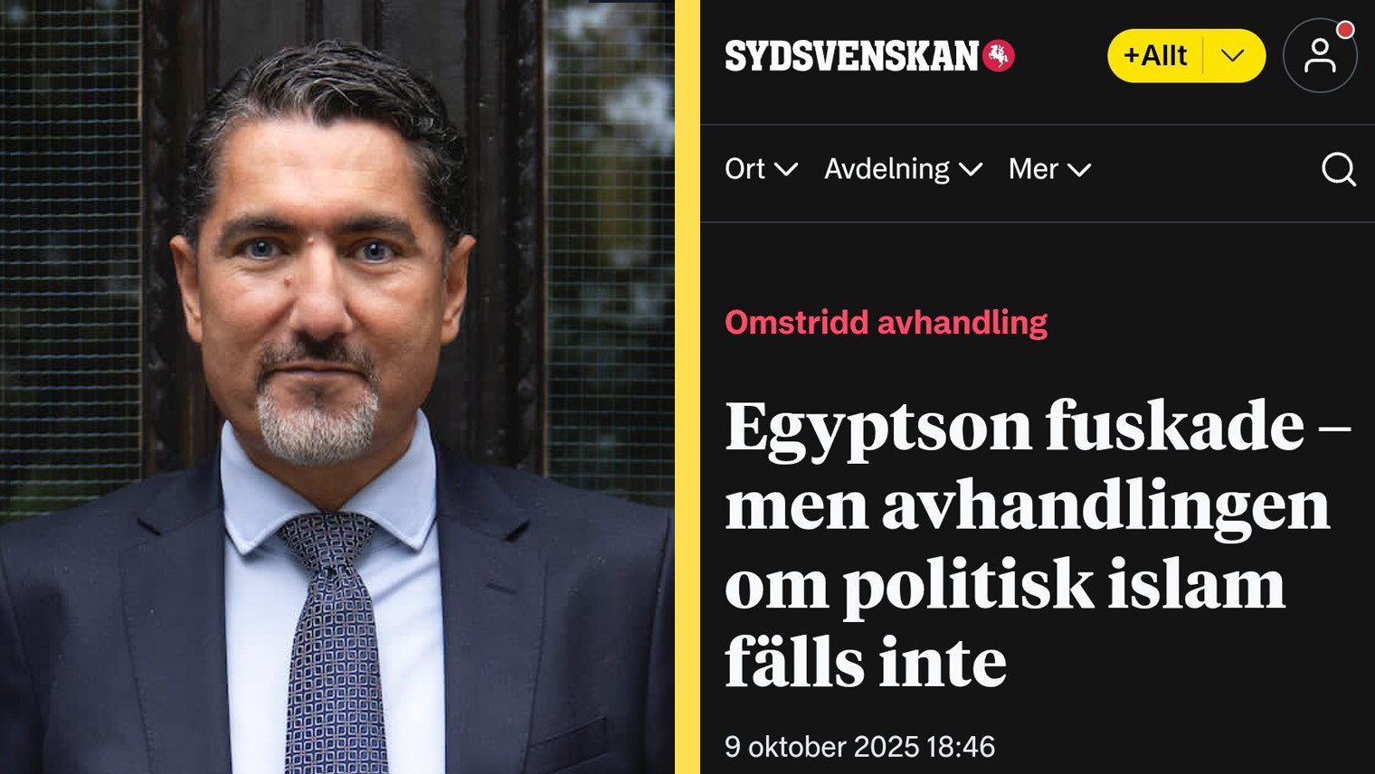 Sameh Egyptsons fall visar hur sköra gränserna mellan akademi, politik och ideologi har blivit i Sverige. Det som började som en forskningsfråga om Muslimska brödraskapets roll i det svenska civilsamhället utvecklades till ett akademiskt ställningskrig där anmälningar, press och sociala påtryckningar ersatte saklig debatt.