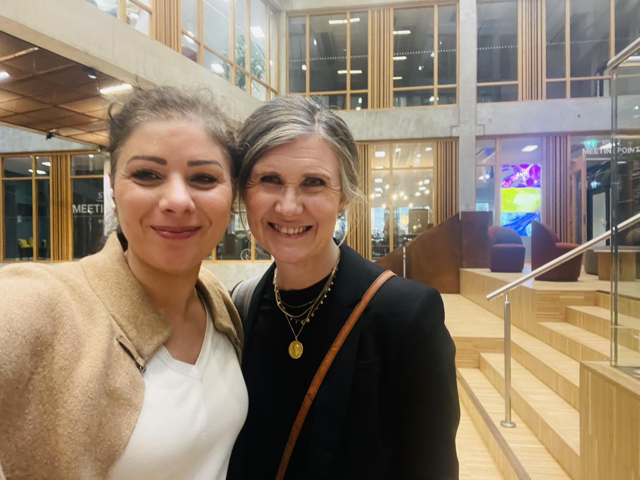 Amani Loubani (S) med Märta Stenevi. Faksimil Facebook