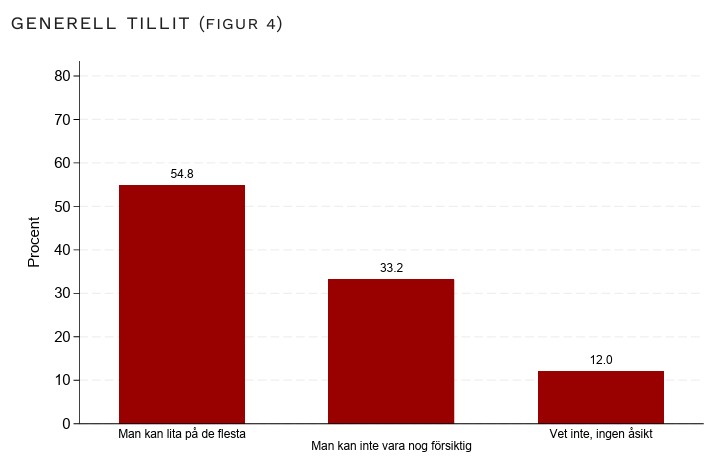 Bland de som är födda i ett EU-land uppger 58 procent att man kan lita på de flesta. Motsvarande siffra för de födda utanför EU är knappt 38 procent.