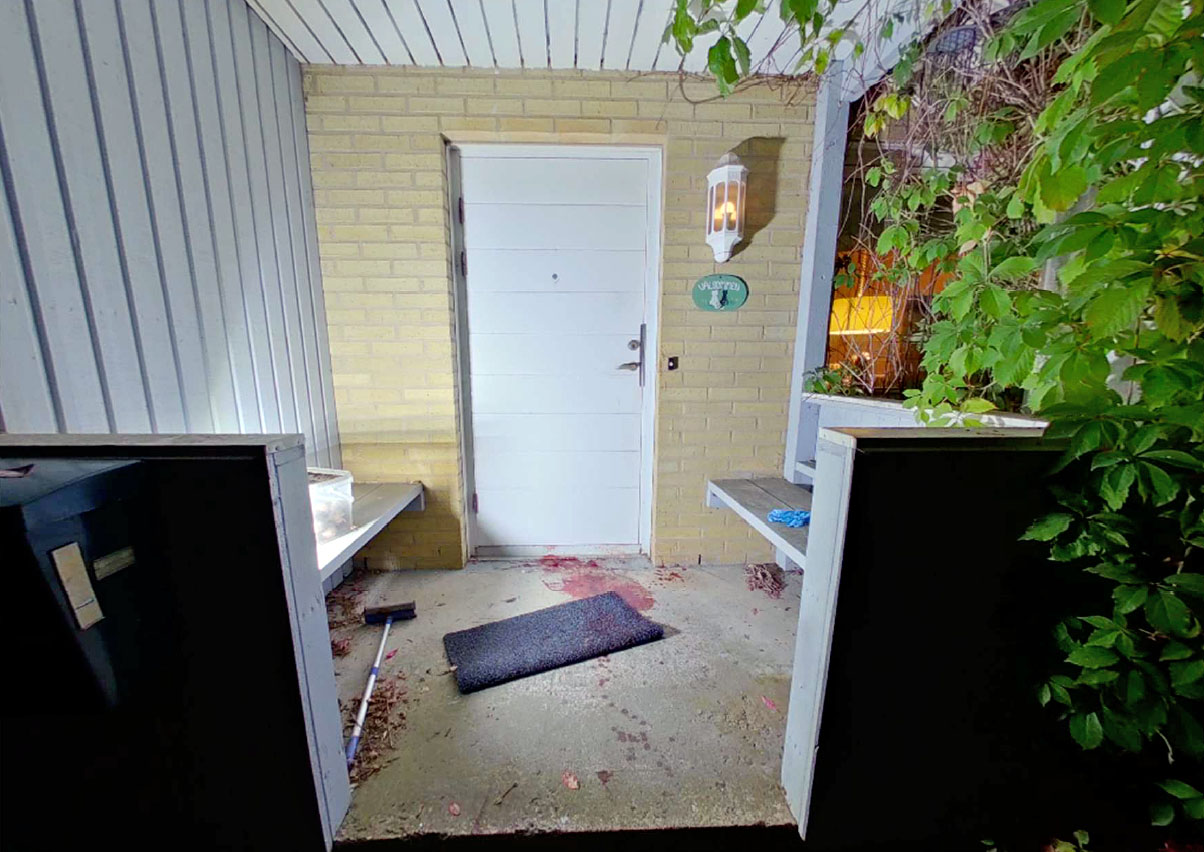 Den kriminaltekniska genomgången visar att själva attacken skedde i hallen eller precis innanför ytterdörren. Blodbilden indikerar ett snabbt och överrumplande angrepp i ett begränsat utrymme, där 80-åringen saknade möjlighet att ta sig undan.