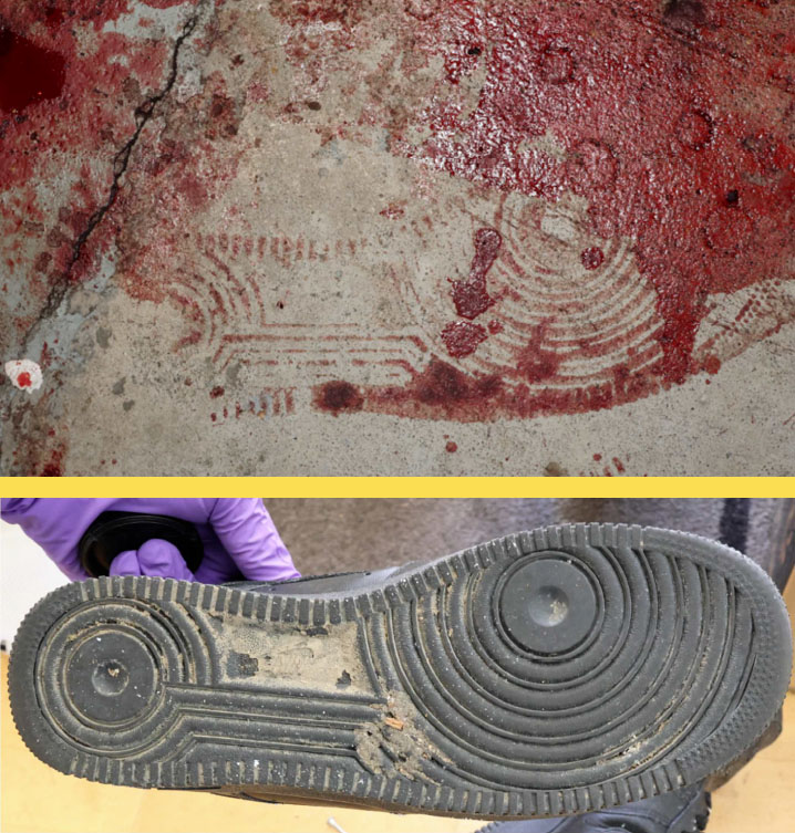 Utredningen visar också hur Gustav rörde sig i blod efter attacken. Han trampade i flytande blod i hallen, gick en bit in i bostaden och passerade därefter åter genom hallen på väg ut. På farstukvisten lämnades två tydliga blodiga skoavtryck – avtryck som senare kunde kopplas till de skor som hittades i Gustavs bostad.