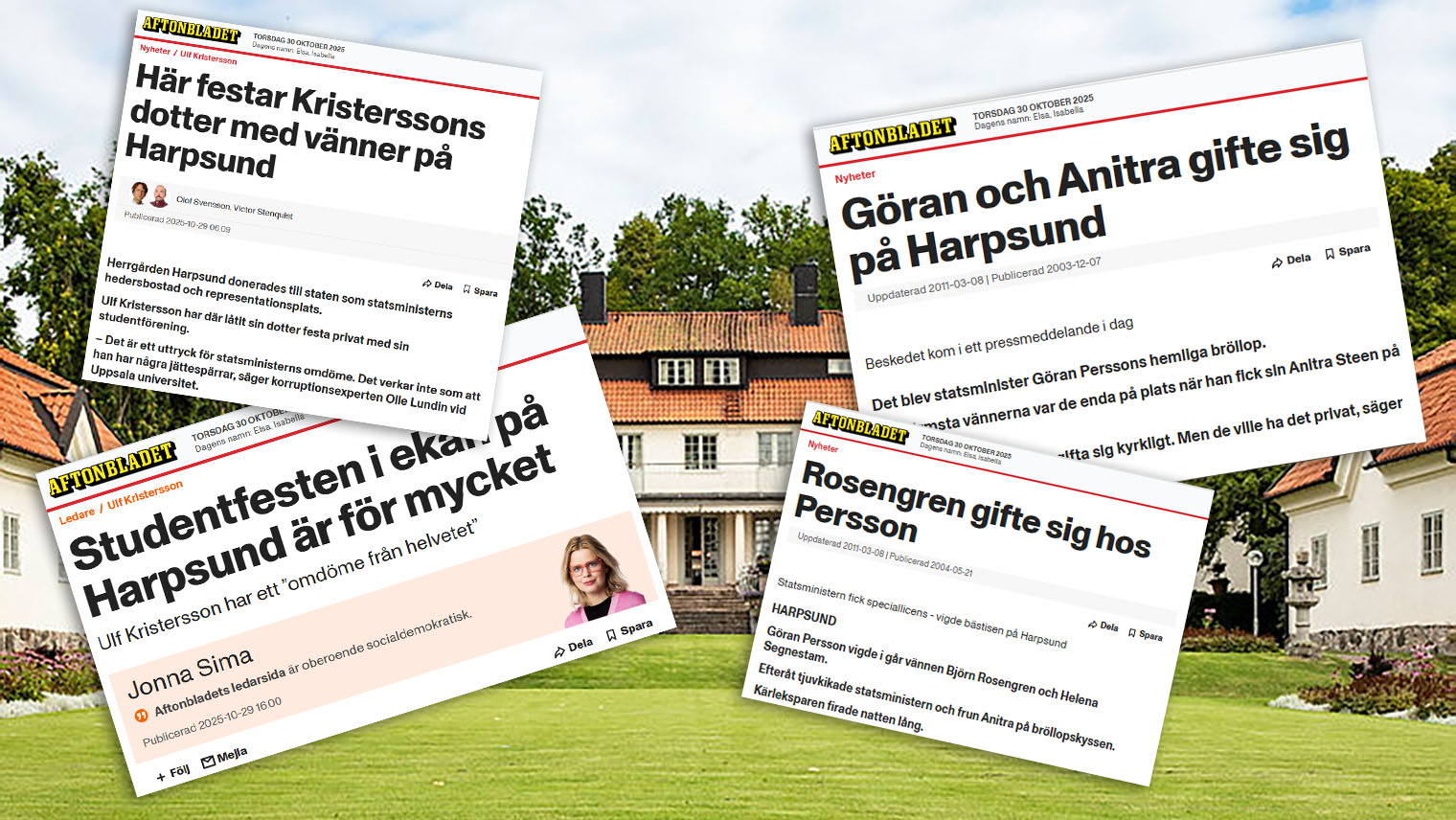 När Göran Persson gifte sig på Harpsund hyllades det av Aftonbladet som ett romantiskt ögonblick på den sörmländska herrgården. När hans vän och ministerkollega Björn Rosengren vigdes där året efter blev det ett glatt inslag i samma tidnings nyhetsflöde. Men när Ulf Kristerssons dotter sommaren 2023 hade en stillsam middag med sina studentvänner på samma plats – då slog Aftonbladet larm om “dåligt omdöme” och “missbruk av statlig egendom”. Frågan som nu ställs är: bedöms Harpsund olika beroende på vem som bor där?