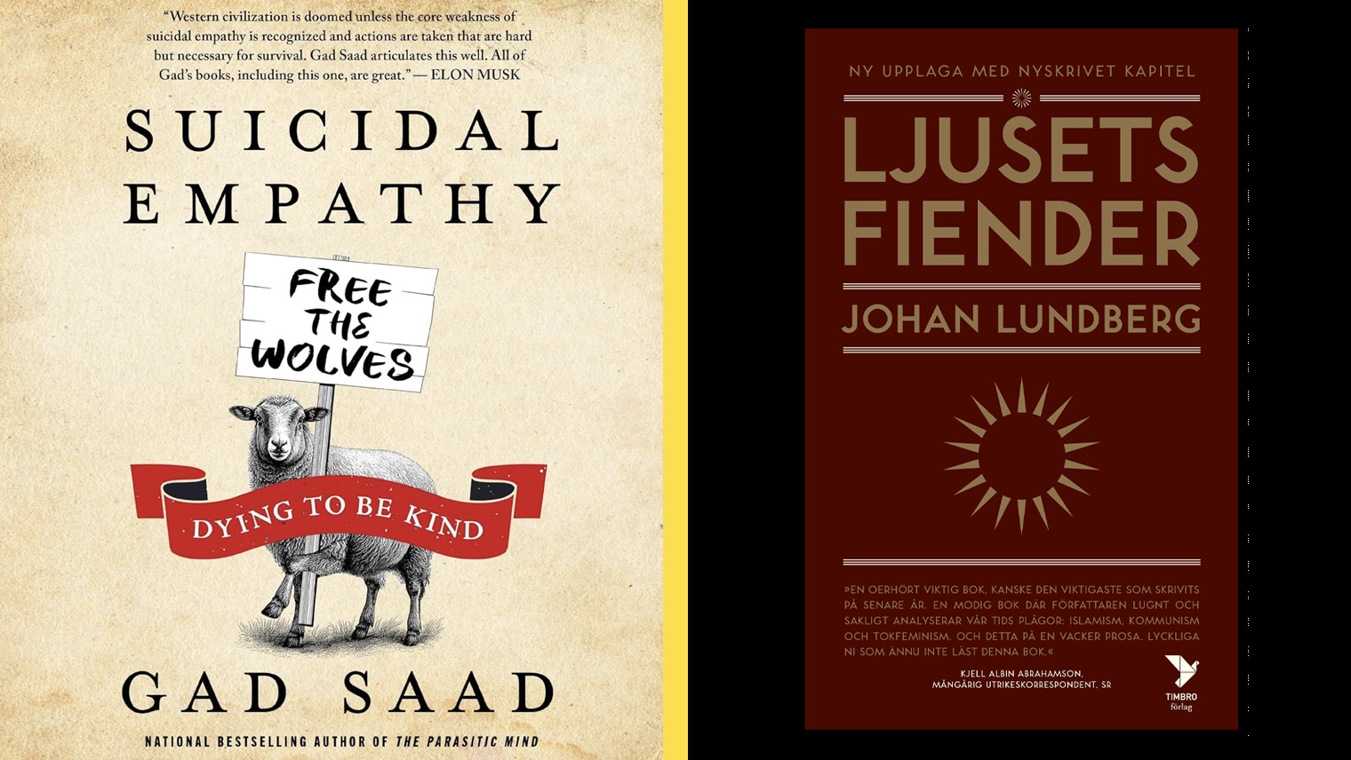 Suicidal Empathy: Dying to Be Kind av Gad Saad och Ljusets fiender av Johan Lundberg