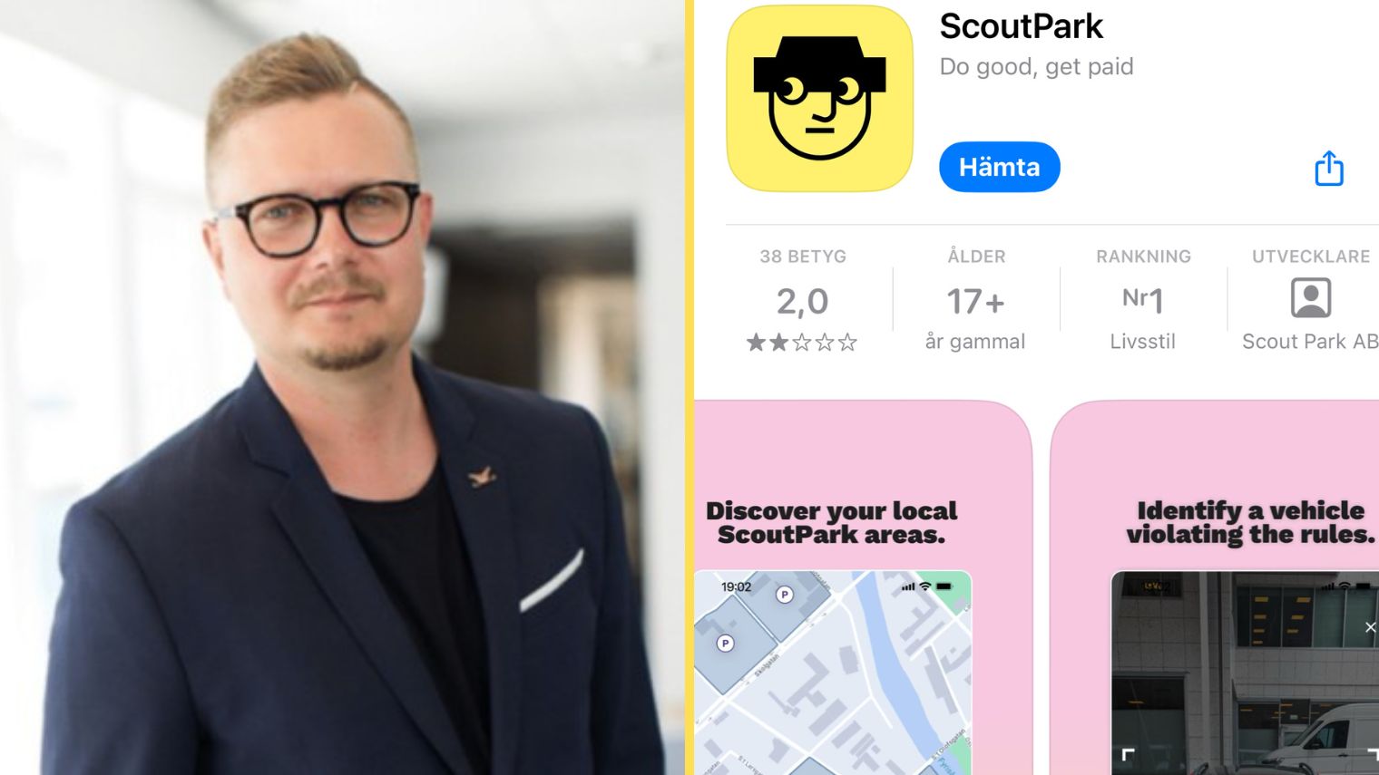 Erik Englund, medgrundare och vd för Scout Park AB, berättar att det är en så kallad gig economy-app som låter alla över 16 år med svenskt personnummer tjäna pengar genom att hjälpa parkeringsvakter att hitta felparkerade fordon.