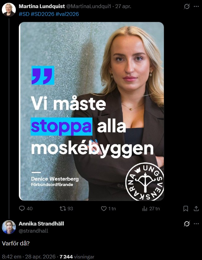 Utöver att stoppa moskén har Sverigedemokraterna också velat utreda kopplingen till den turkiska islamistiska rörelsen Millî Görüş – något stiftelsen tidigare förnekat. Enligt Okur gör SD det för att de ”vill vinna röster på de som hatar muslimer”.