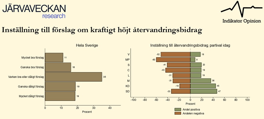 – Ett kraftigt ökat återvandringsbidrag är ett relativt impopulärt förslag bland svenska väljare – det är klart fler som tycker att det är dåligt än som tycker att det är bra. Även om förslaget är betydligt mer populärt bland Tidöpartiernas väljare finns det en betydande andel väljare till höger som ställer sig skeptiska. Utifrån de här siffrorna ser det inte ut att vara ett valvinnande förslag, säger Per Oleskog Tryggvason, opinionschef på Indikator.