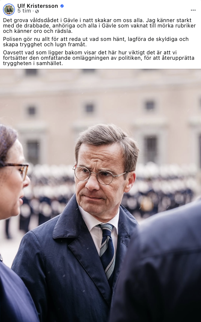”Vi ber för offren, deras familjer, deras föräldrar och för alla svenskar som söker trygghet i sina egna samhällen. 🙏”