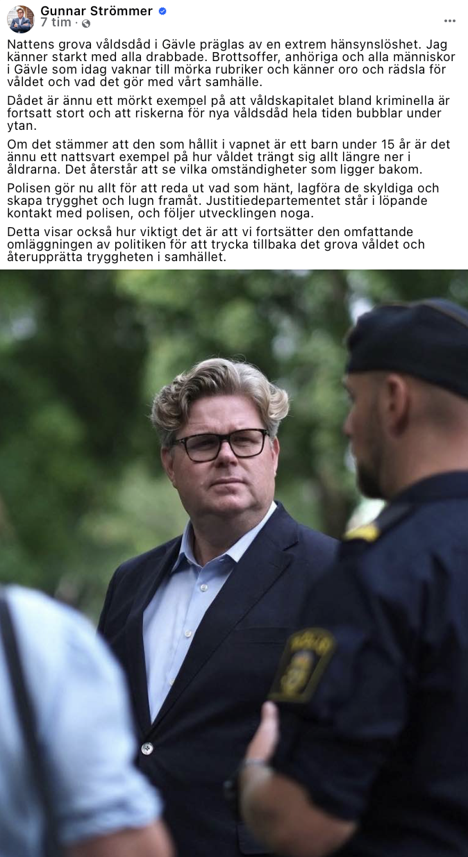 Efter nattens skjutning i Gävle har både statsminister Ulf Kristersson (M) och justitieminister Gunnar Strömmer (M) gått ut med kommentarer om våldsdåden som fortsätter skaka landet.