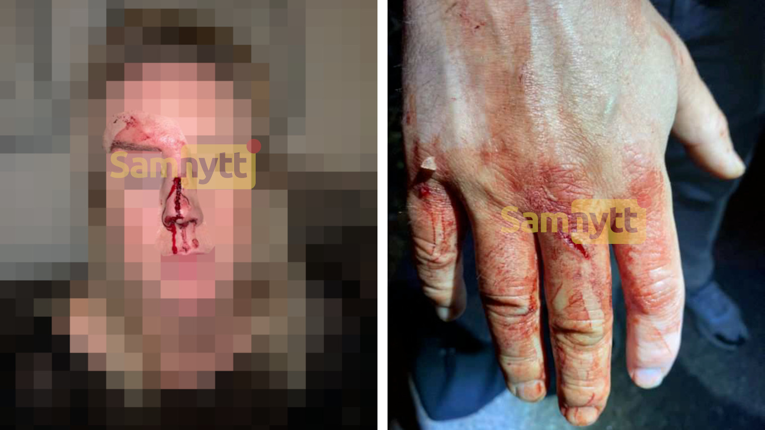 Systerns ansikte och polismannens hand efter misshandeln. Foto: Polisens förundersökning