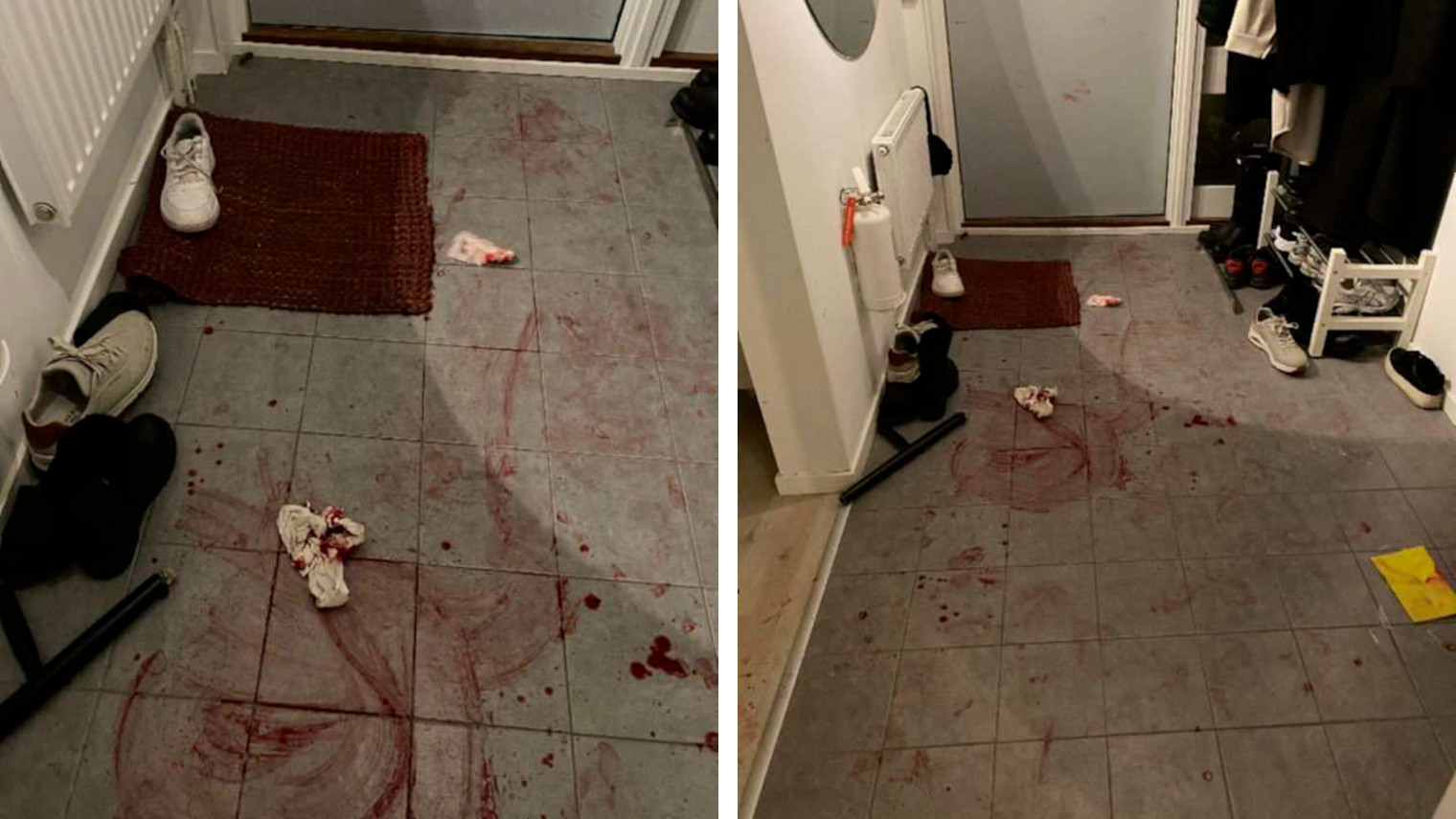 Efter tumultet ligger en stol med avslaget stolsben på golvet. En tavla och en fönsterruta har krossats. Polismannens storasyster är chockad och blöder ymnigt efter misshandeln. Det är blod på golv och väggar.