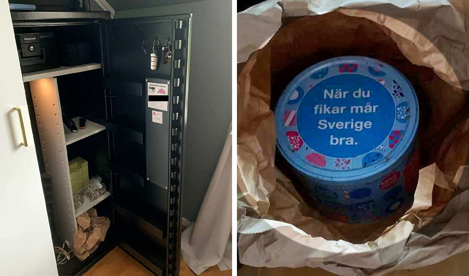 Poliserna har även förvarat och hanterat beslagtagna droger på ett felaktigt sätt, både i polishuset och i den ene polismannens hem. I ett kassaskåp hemma hos polismannen hittades vid en husrannsakan ”en större mängd vitt pulver”. Det är emellertid hemligt vad det rör sig om för narkotika.