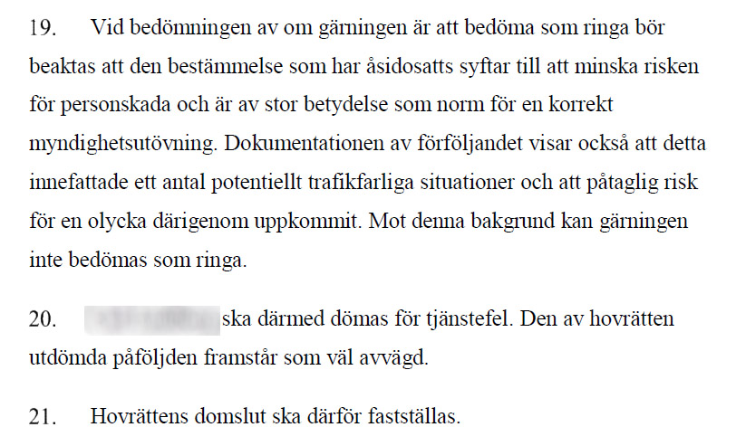 Därmed fastställdes hovrättens dom: polismannen döms för tjänstefel till dagsböter.