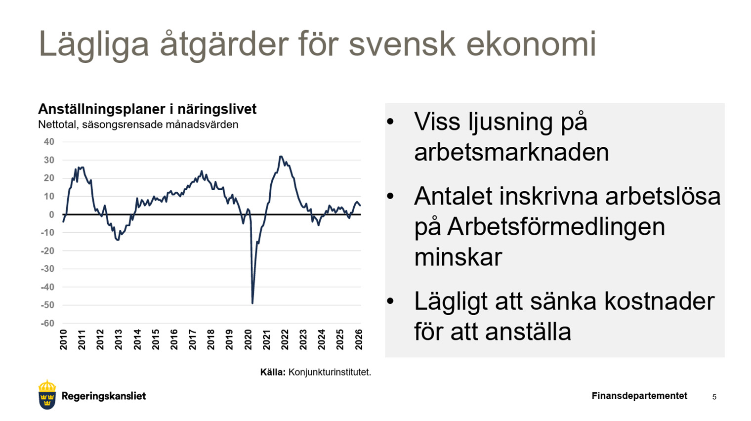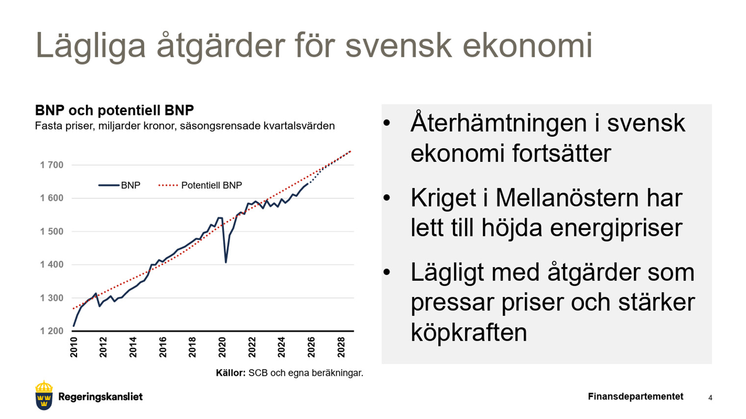 Regeringen signalerar att ytterligare stöd är att vänta. En vårändringsbudget ska presenteras inom kort med fler åtgärder för hushåll och företag. Svantesson sammanfattade reformpaketet som en del av en större strategi.