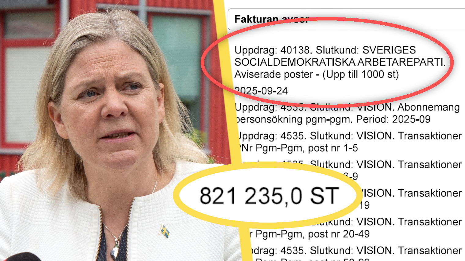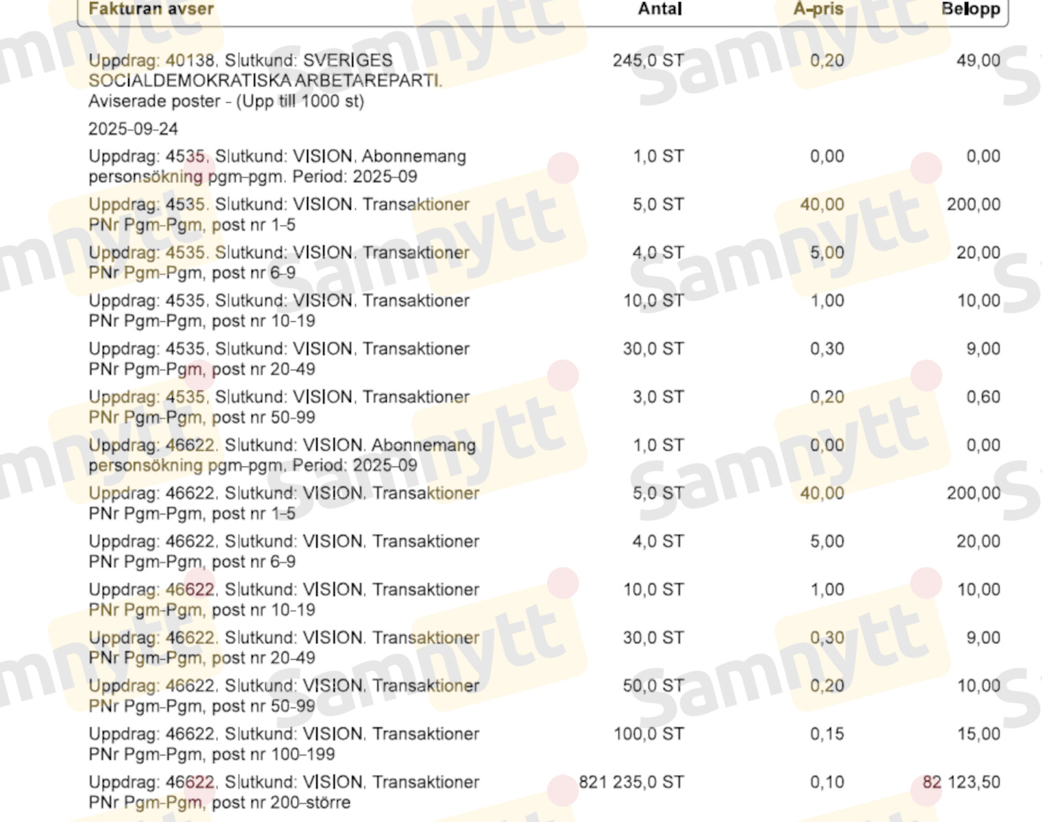 Varför Socialdemokraterna finns med på samma faktura, och om de på något sätt använder samma personuppgiftsfunktion som Vision, framgår inte.