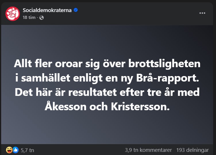 Enligt Socialdemokraterna, som själva hade makten fram till valet 2022, är den utbredda otryggheten regeringens och Sverigedemokraternas fel – något få i kommentarsfältet på Facebook håller med om.