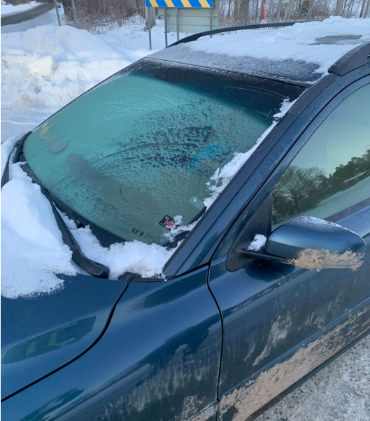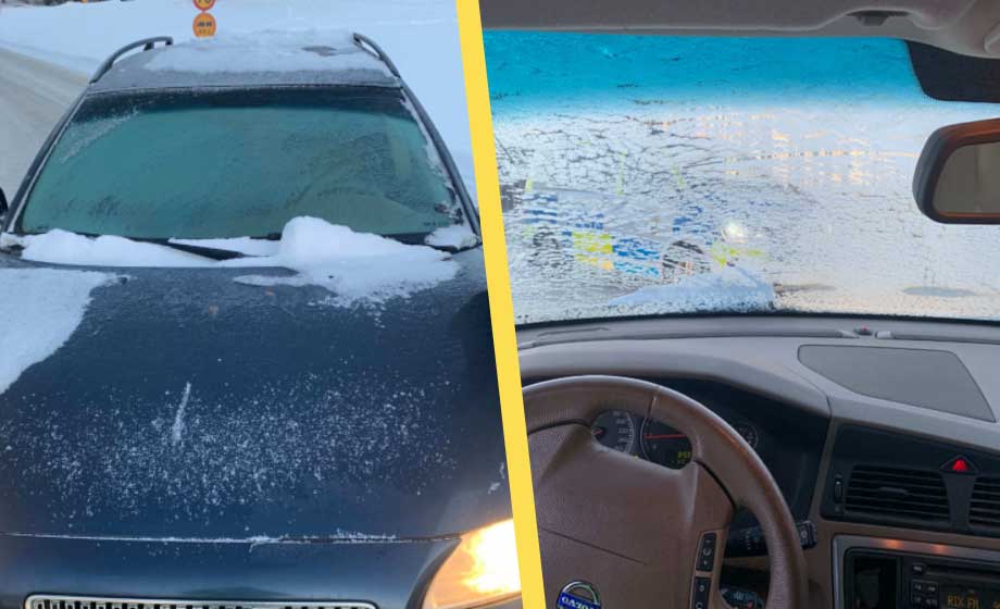Bilens framruta och passagerarruta var täckta av is och frost. Polisen bedömde att sikten var så begränsad att bilen var trafikfarlig.