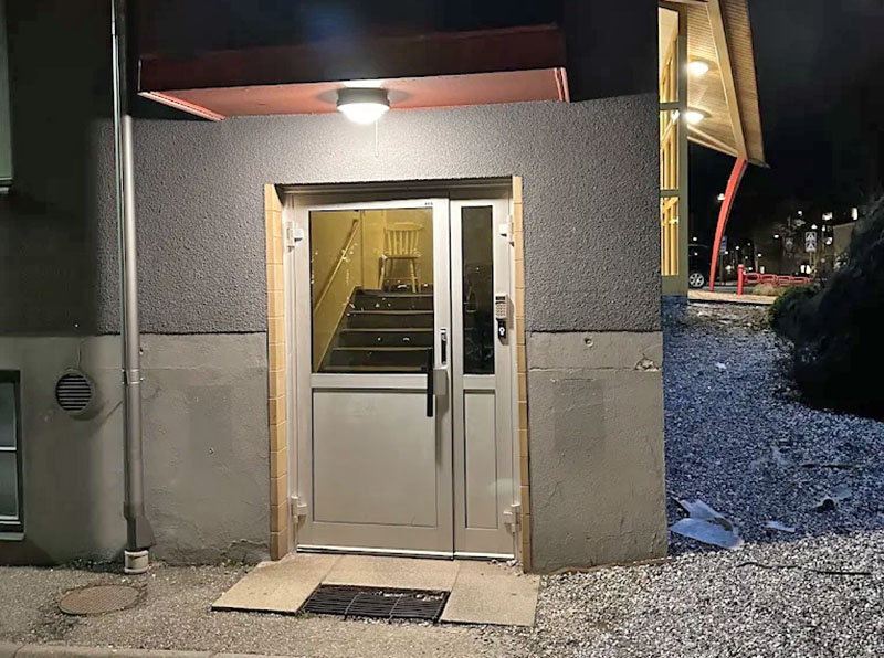 Moskéns ingång – lokalerna ligger en trappa upp. Bild: KIKF.
