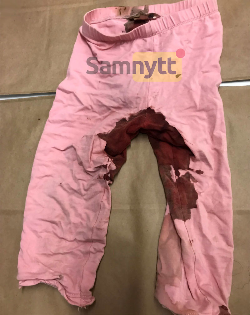 De byxor flickan hade på sig när hon kom till sjukhus. Bild: Polisen.