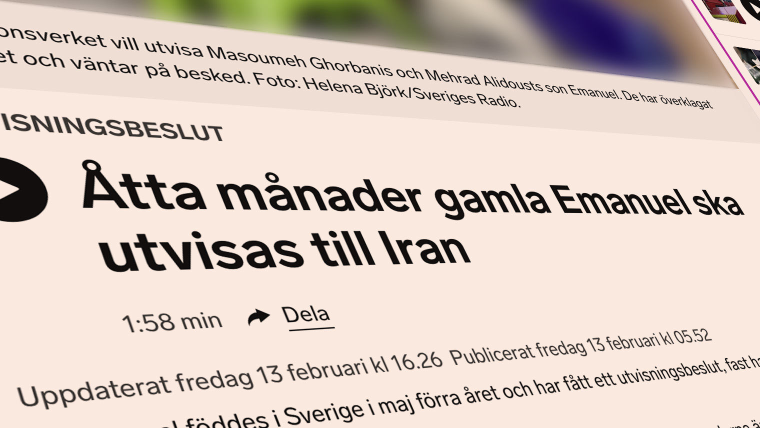 Samnytt får kontakt med journalisten Helena Björk på Sveriges radio, som står bakom artikeln ”Åtta månader gamla Emanuel ska utvisas till Iran”.