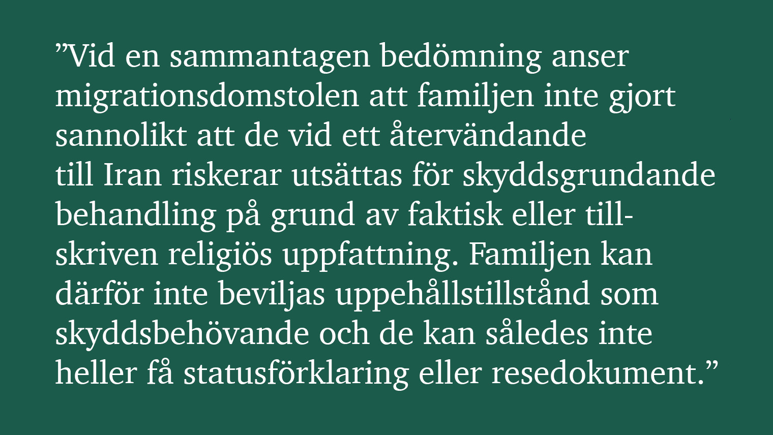 – Det hade ju varit det normala. Det finns en mycket stor risk att Migrationsverket får bassning i det här ärendet genom Migrationsdomstolen.