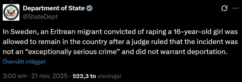 Avslutningsvis skriver man att USA kommer att granska västerländska länder som inte tar itu med importerad brottslighet, uppmanar till att ta befolkningens oro på allvar och står redo att hjälpa till med att hitta lösningen på problematiken: